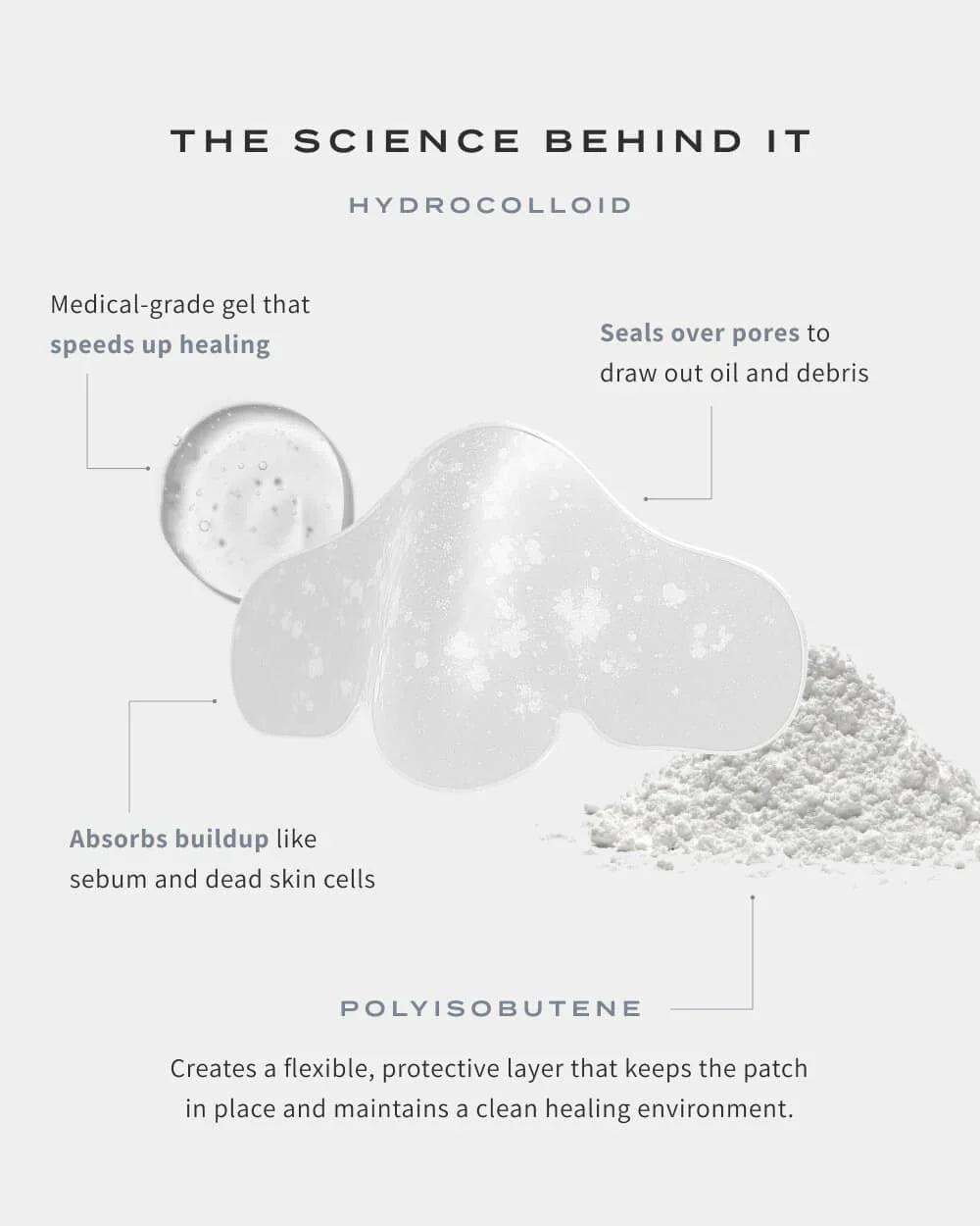 L'hydrocolloïde absorbe doucement l'excès de sébum sans abîmer la peau, aidant à rééquilibrer la production et à rompre ce cycle.